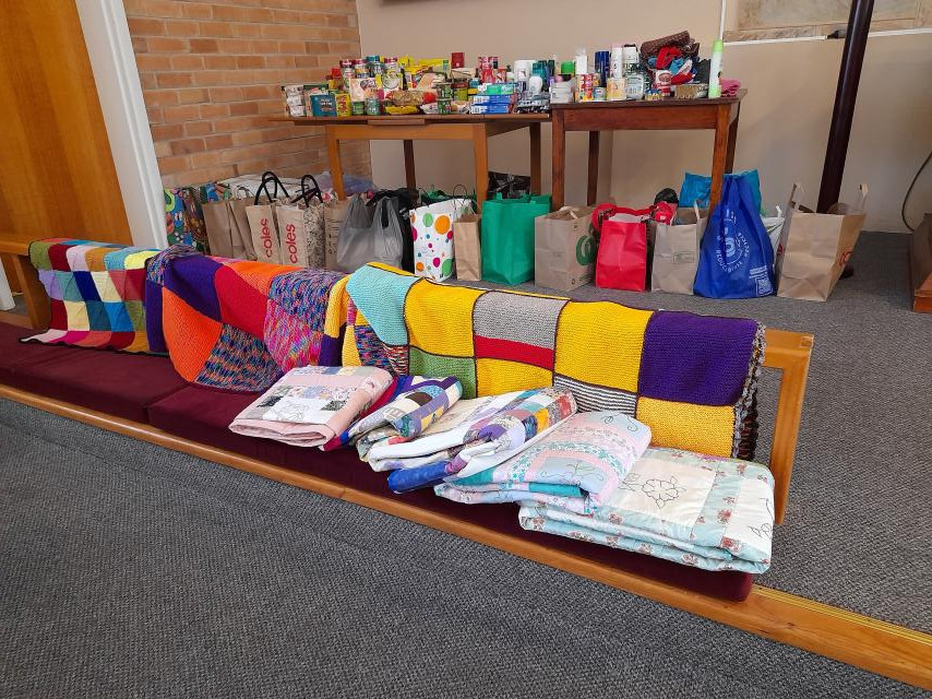 Attendees were invited to bring pantry goods which were to be donated to Lutheran Care. Knitted and patchwork quilts were also donated to Lutheran Care.