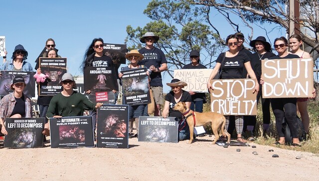 Animal rights protestors gathered in vigil at Andgar Piggery on Saturday 4 October, following a fire which resulted in the deaths of 325 pigs last month.