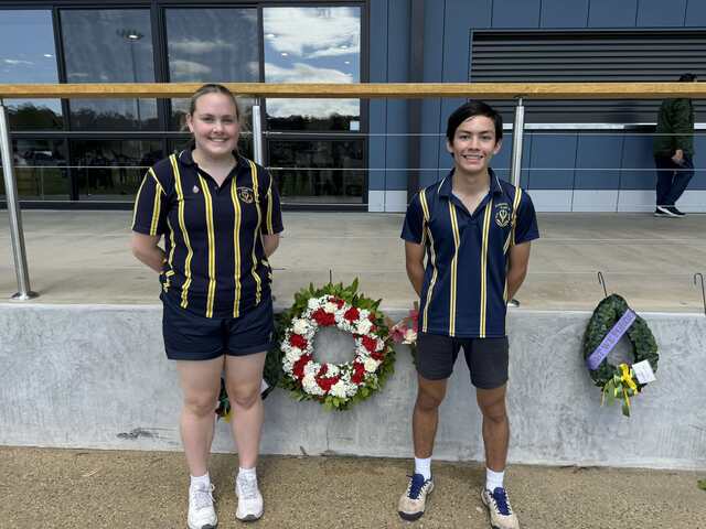 St Joseph's School Clare students Sophie Green and Bryce Correa were honoured to speak and lay a wreath at the Remembrance Day service in Clare last year. (Jaynie Morris: 442971)