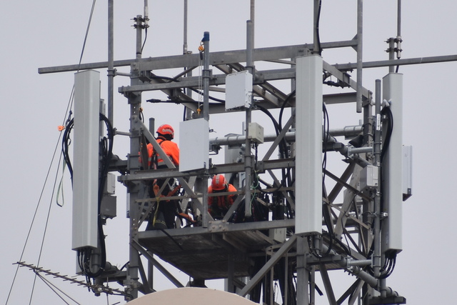 Crews at work on the phone tower in Balaklava. (Jarrad Delaney: 518212)