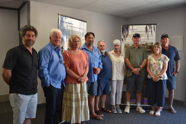 Some of the people who were affected by the 2015 Pinery fire gathered at the new Community Centre at Mallala for the official opening in 2023. From left is Kevin Tiller, John Lush, Fiona and Paul Silvestro, Brenton and Jan Darby, Wayne Heaslip and Tarnia and Andrew Pratt. (Jarrad Delaney 374372)