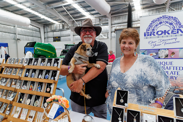 Graham, and Rosie Van Heerde, with Jasper the dog at the FARM Centre for the Light Regional Farm and 4x4 Expo last year, one of several event the centre had hosted. (Photo courtesy of The Bunyip)