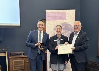 Everyone who gathered at Two Wells Community Centre for the 40th anniversary afternoon tea. (Back): Penny Pratt MP, David Paton (Adelaide Plains Council Deputy Mayor), Tony and Lisa Daniele, Peter Daniele, Kay Boon, Anne Arbon, Margherita Panella, Yolanda Cannizzaro, Robert Arbon, Mark Wasley (Adelaide Plains Council Mayor), John Dawkins, Richard Verner, Janene Lynne; (front): Robyn Ford, Christine Hayes, Mark Hayes, Joe Daniele, Denis Pellizzaro, Rae Corston and Lynette Seccafien. (Jarrad Delaney: 513126)