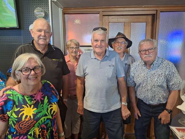 Ann Stodart, Barry Flitter from BTR Excavations, Helen Gameau, Ian Gameau, David Stodart and Kevin Henwood at Two Wells Tavern. Barry would cover the cost of the luncheon. (Pamela Duncan)