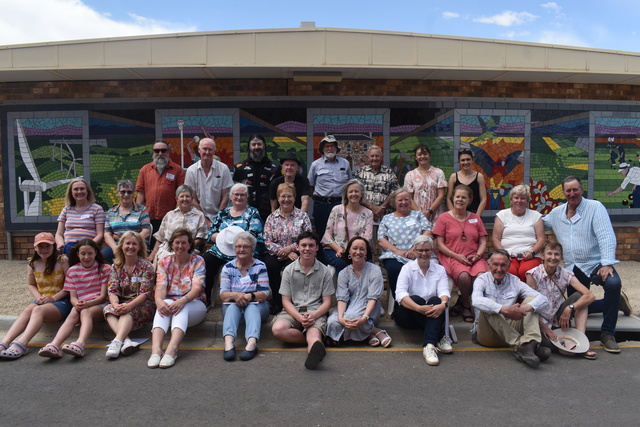 People involved with creating the mosaic gather in front of it during the Blyth 150 celebrations, this year's Wakefield Regional Council Event of the Year. (Jarrad Delaney: 514581)