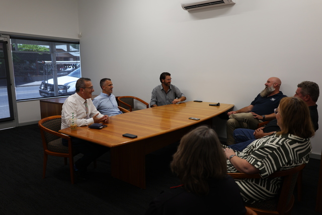 The Premier and Tony Piccolo MP meet with local Businesspeople in the WSB Distributors training room in Clare. (Supplied)