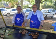 About 60 to 70 people gathered at Lindsay Park in Owen for a free Australia Day breakfast on Monday morning.