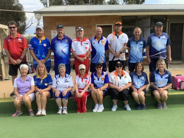 Knockout rounds for State Pairs were played at Blyth last weekend. (Back): Stewart Gray, Daniel Glazbrook, Noel Heinrich, Ryan Longmire, Mike Day, Aaron Freeman, Wayne Molineux, Mark Griffiths; (front): Pauline Mansell, Lilian Sharman, Lynette Welke, Shenen Longmire, Kylie Day, Carmen Stringer, Yvonne Molineux and Sandra McKean. (Supplied)
