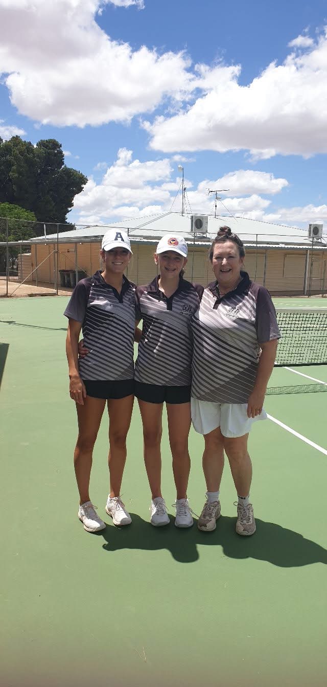 Alexa Young and Claudia Cowan debut for Lochiel Senior Tennis, along with Claudia's grandma Kathy Nicholls. (Supplied)